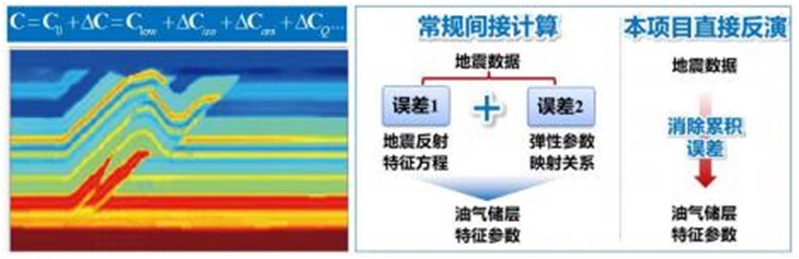 构建了多类型复杂储层不同性质的 25个敏感特征参数,建立了表征介质弹性、粘滞性、各向异性及物性、脆性等储层性质的 18组地震反射特征方程,提出了贝叶斯理论框架下的特征参数直接反演方法,创建了杨氏模量、泊松比、拉梅阻抗、品质因子等敏感特征参数叠前地震直接反演技术,避免了常规方法间接计算引起的累积误差,直接反演精度平均提高12%以上。