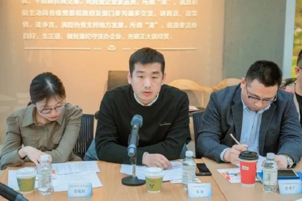 阳春四月,生机勃勃。为进一步落实落细区委、区政府产业链“链长制”工作部署,推动市南区居民服务业高质量发展,建立健全“12+N”多层次政企深度互动沟通机制,营造亲而有度、清而有为的新型“亲清”政商关系,4月23日,市南区邀请居民服务产业链“链主企业”、部分规上企业和重点企业以及行业商会协会代表走进青岛市亲清政商关系廉洁教育馆,组织召开“政企连心”促发展 “亲清暖心”看市南——市南区居民服务业产业链恳谈分享会。市南区政府党组成员、副区长冯洪珍出席会议并讲话,市南区民政局党组书记、局长刘九红主持会议,区纪委监委派驻二组、区纪委监委暖南护航专班相关负责同志参加会议,青岛华慧泽知识产权代理有限公司应邀参会。