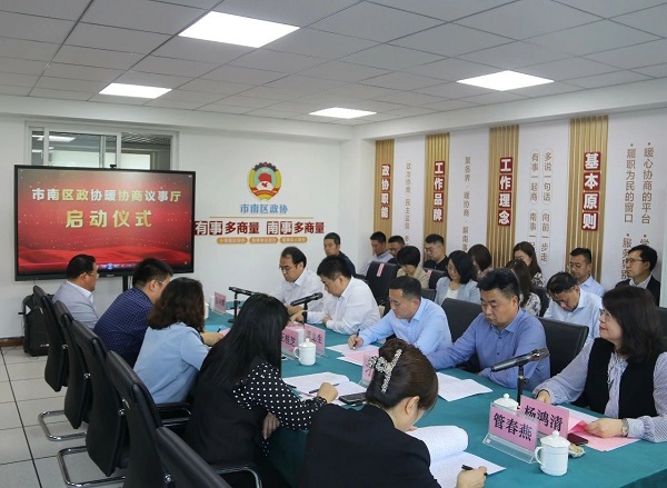 会议宣读了《青岛市市南区政协“暖协商议事厅”建设实施方案》,观摩了首期《委员有话说》、《暖南帮您问》节目,政协委员娄雷作表态发言,与会领导共同为市南区政协“暖协商议事厅”揭牌并启动。